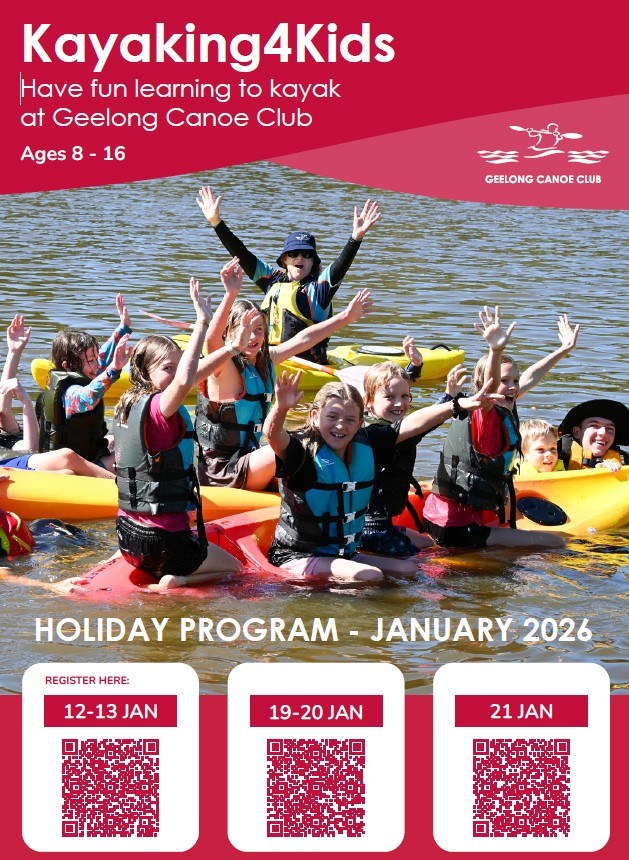 Canoe Looking for a fun holiday activity? Please click the link for the Geelong Cnoe Club ages 8-16.